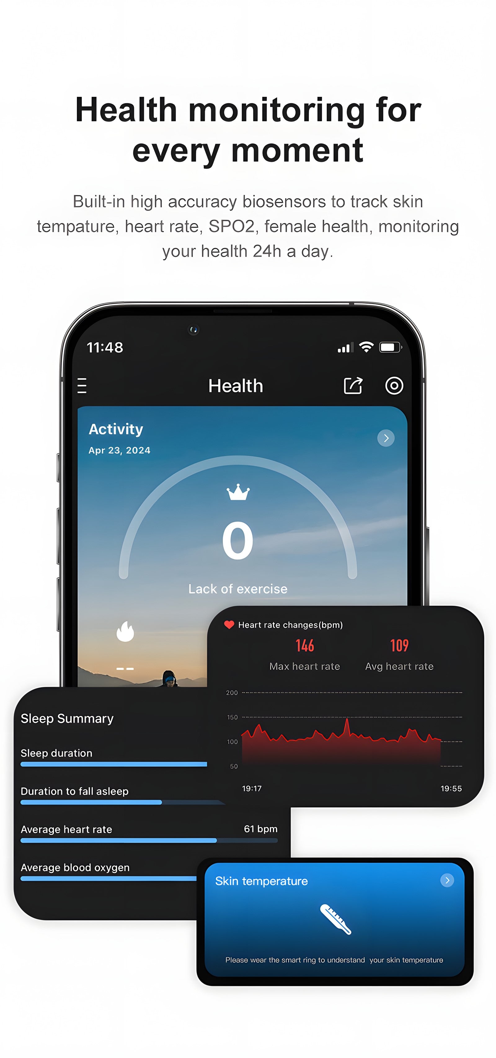 - Sleep quality: sleep duration, sleep stages, nighttime vital signs
