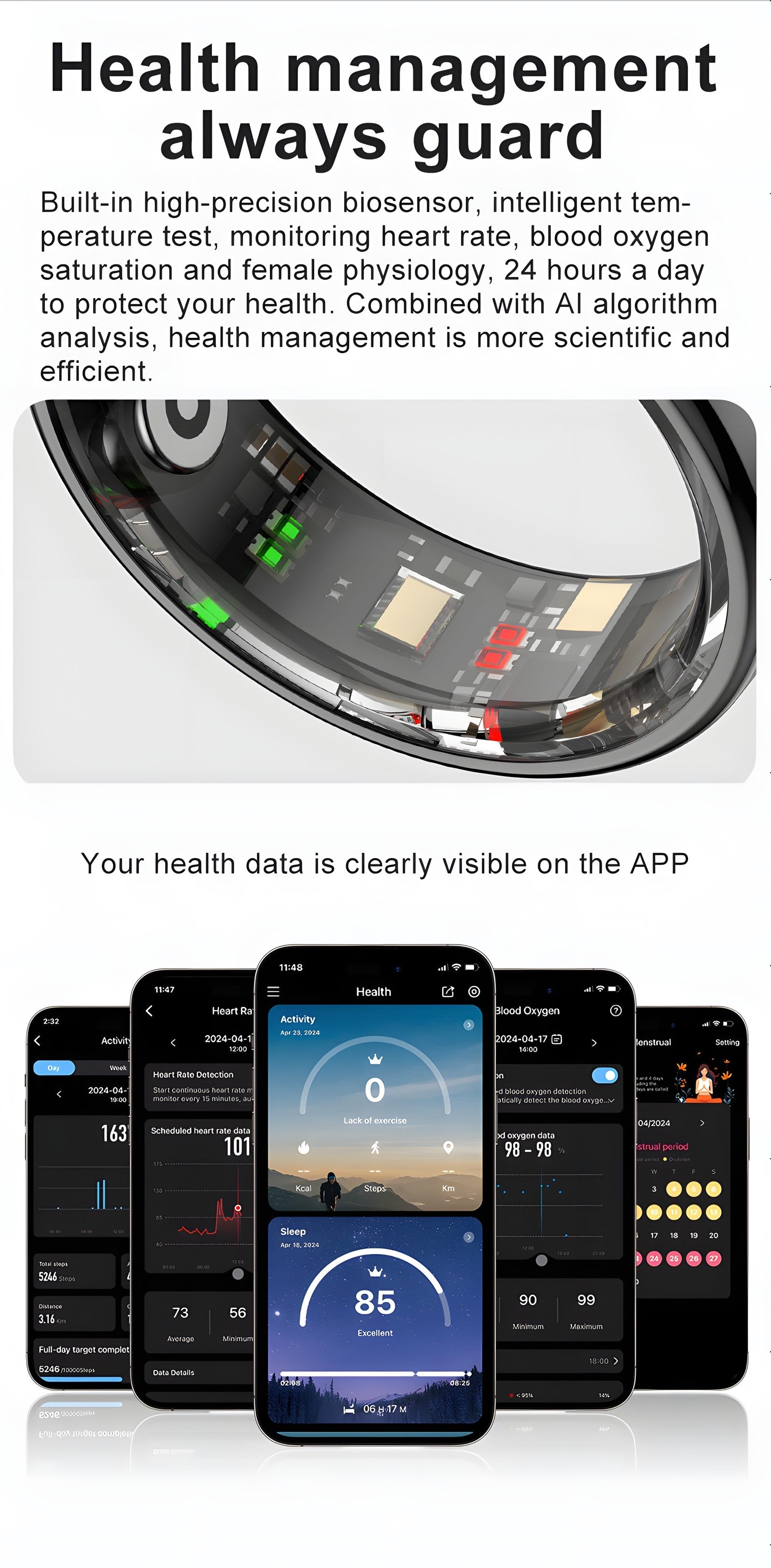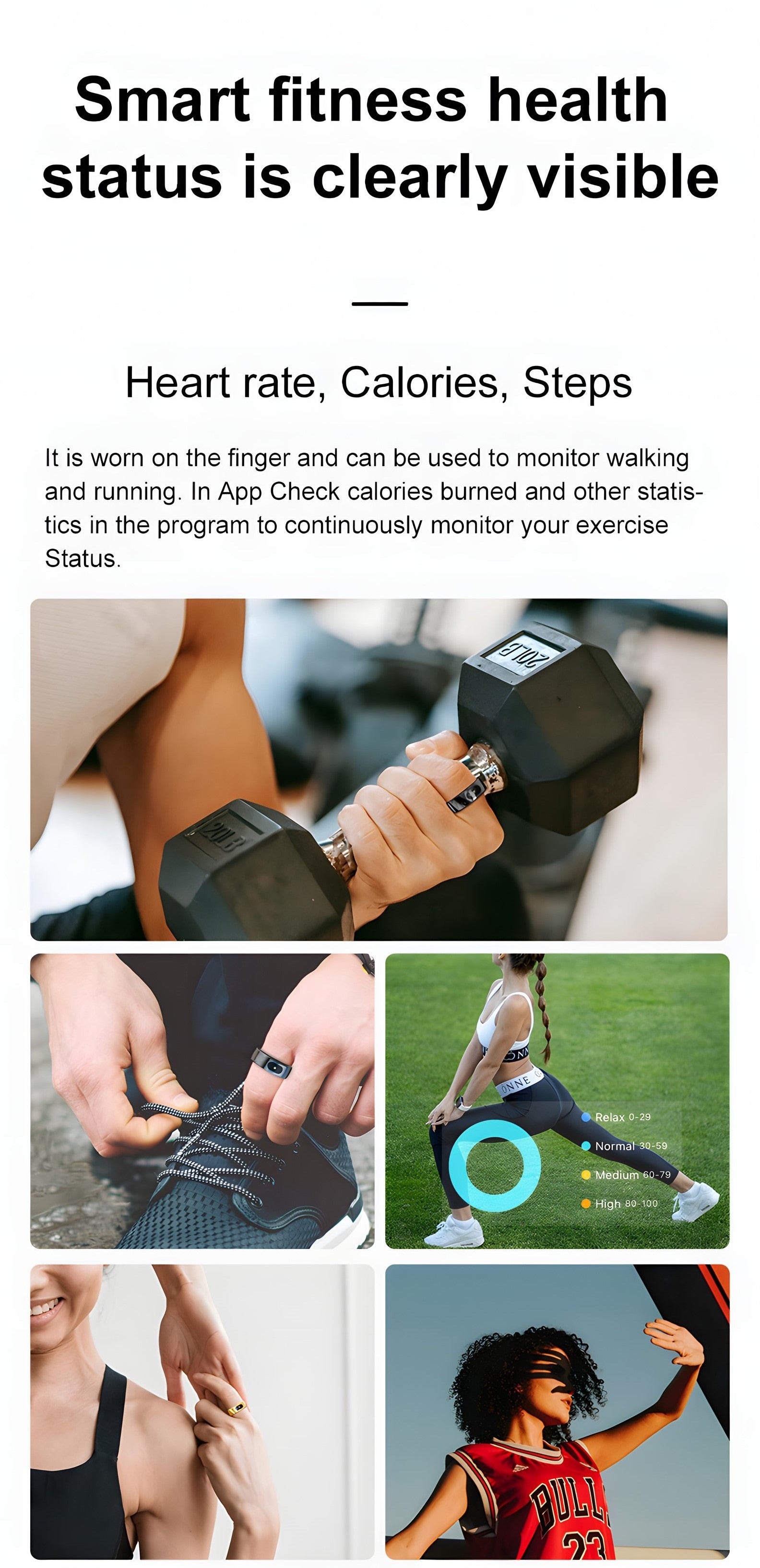 This smart ring is quite impressive. I downloaded the recommended app and found it very easy to use. The first night I had a pretty high heart rate at one point just before bed, I checked the app, and sure enough my rate was elevated. It actually scared me, and I thought the ring may be wrong. I double checked the rate against my oximeter ~ it matched both heart rate and blood oxygen levels, which gave me some confidence on accuracy. If I had any other symptoms or questioned what readings meant, I would definitely contact a physician. Only a doctor can make an accurate diagnosis. I also have a blood pressure monitor to double check any issues.After that night, I had some good sleep, tracking the progress in the app. I had gotten up in the night, and it was tracked, for example. Heart rate & blood oxygen were measured in timely increments and recorded throughout the night. Sometimes you can also see either a red or green light flash as measurements are taken.Speaking of measurements, I got a size 10 for my pointer finger. It took some getting used too, but I didn't really notice I was wearing it after awhile.The app also tracks calories burned and excercise progress including steps walked. So far, I'm impressed with this ring ~ and the price is right!